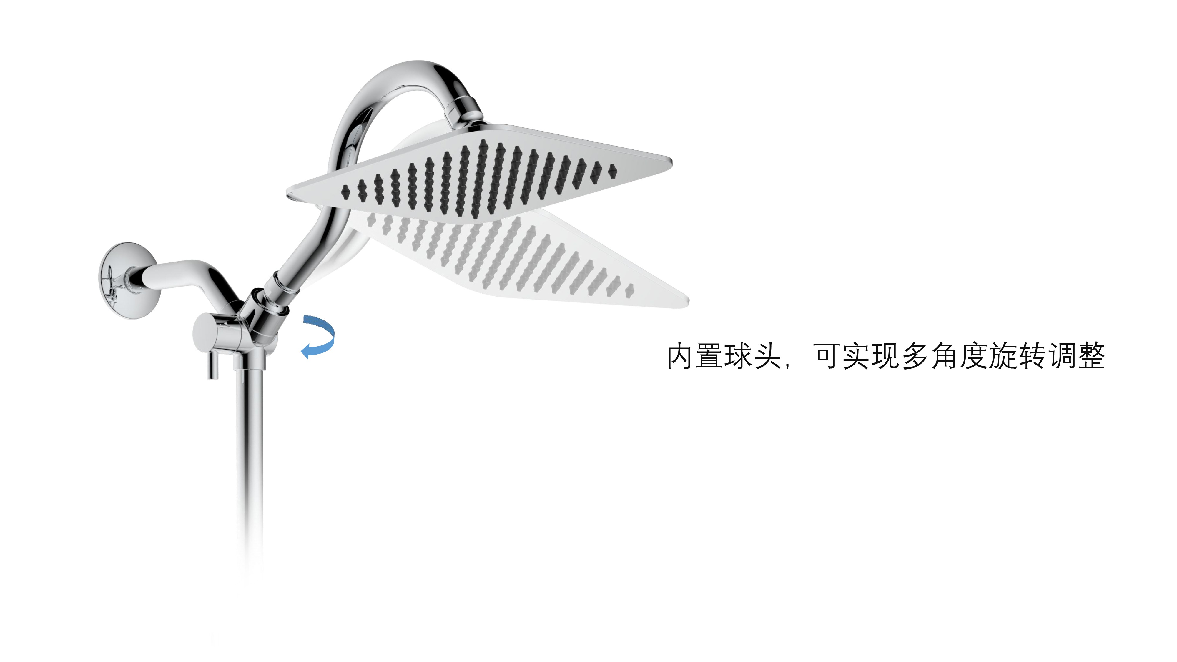 上出水彎管套裝;頂噴內(nèi)置球頭,可實現(xiàn)多角度旋轉(zhuǎn)調(diào)整;把手切換頂噴出水、花灑出水;轉(zhuǎn)動把手調(diào)節(jié)滑座高低